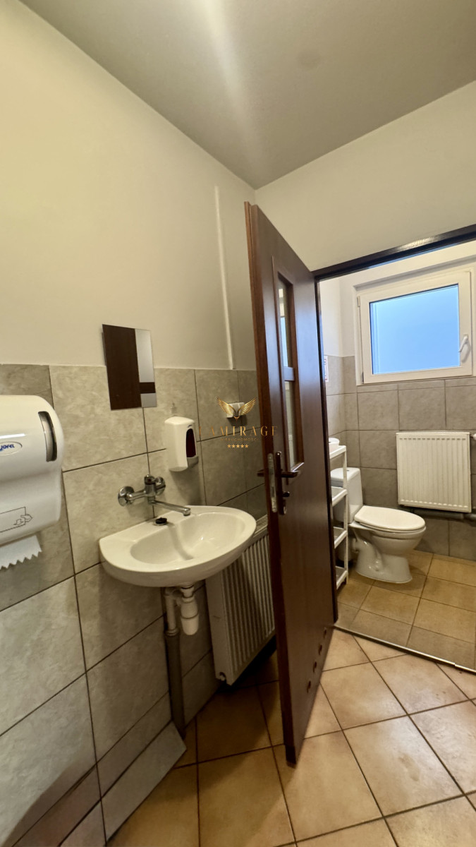 - części biurowo socjalnej - przy wejÅ›ciu głównym znajduje siÄ™ maÅ‚a recepcja, jedno biuro, aneks kuchenny oraz toalety,Â