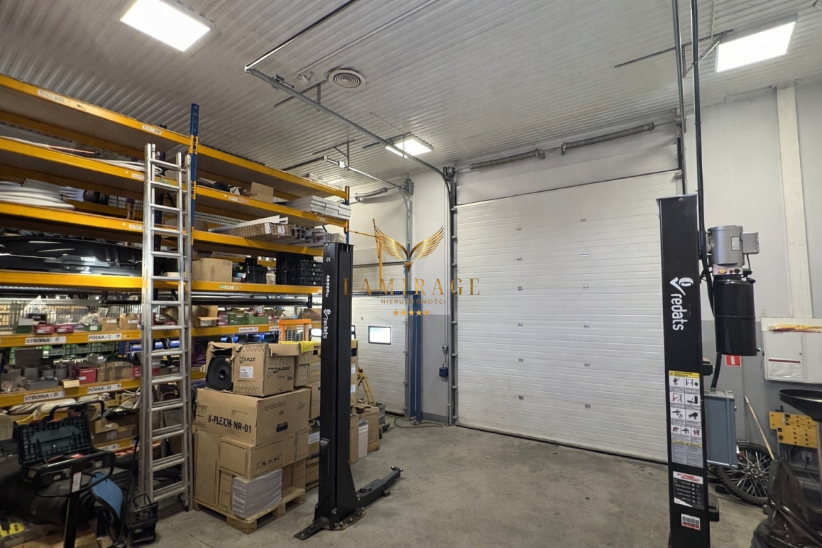 - części magazynowej o powierzchni 120 m2, z trzema niezależnymi bramami w tym jedną dużą. Istnieje możliwość prowadzenia warsztatu, obecnie w podłodze zamontowane są regały oraz podnośnik samochodowy